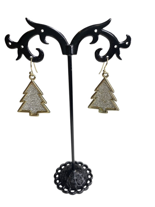 Goldtone Fishhook Earrings Christmas Tree Sparkle 1.5" Drop