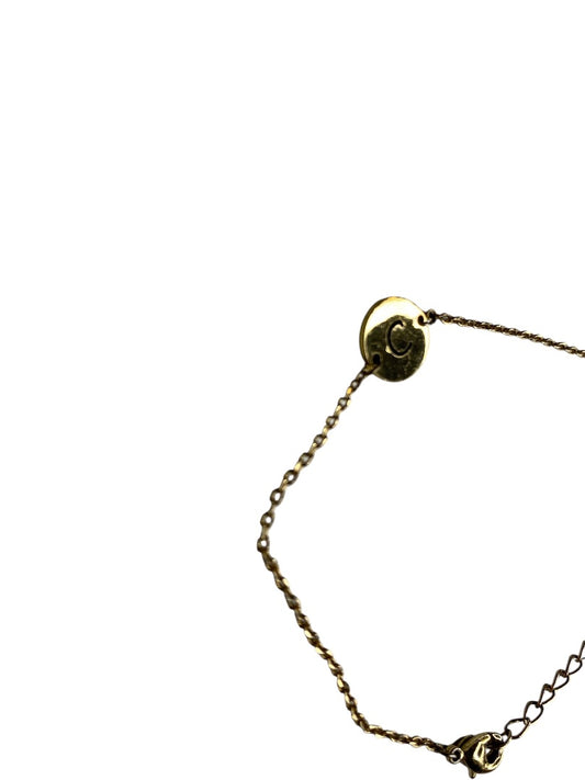 Delicate Goldtone Chain Bracelet "C" Charm Medal 5.5-7.5"