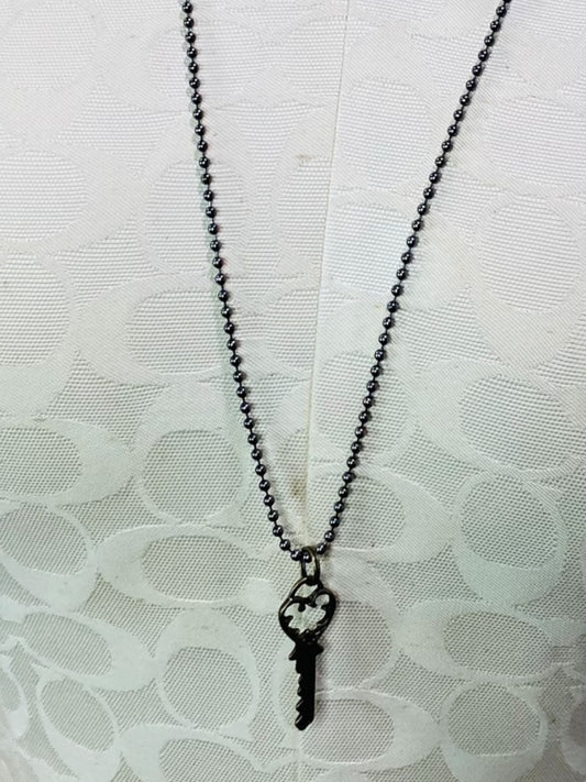 Bronze Color Necklace Bead Chain Skeleton Key Pendant 30"