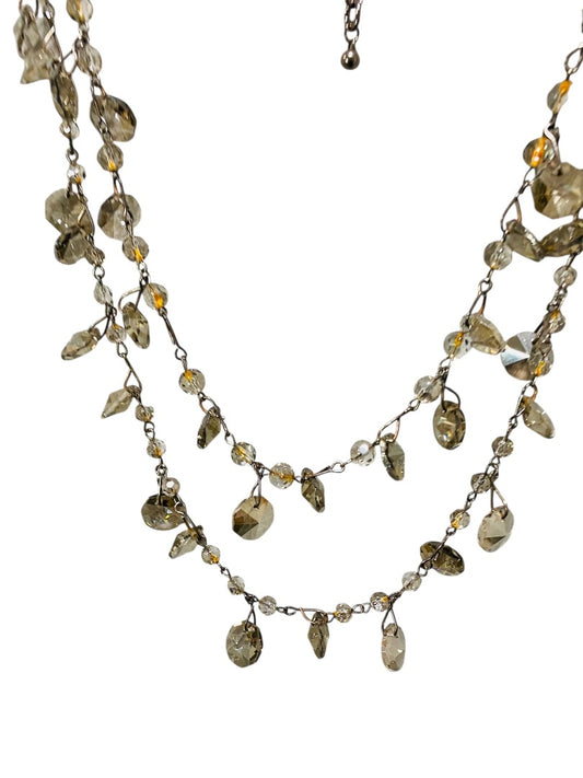 Pewter Color Double Strand Necklace Chunky Crystals 29" Chain