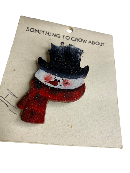 Snowman Brooch Lightweight Wood 2.5" Pin Winter Something to Crow About