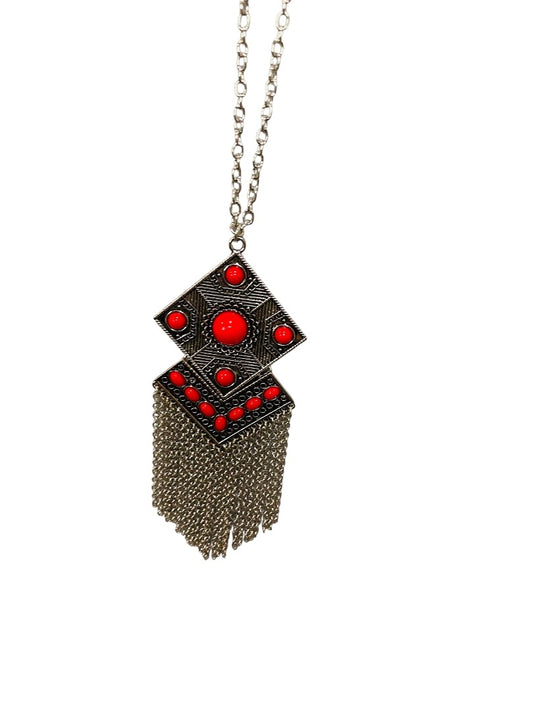 Paparazzi New Silvertone Necklace and Earring Set Red Beads 40"