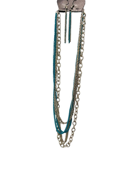 Paparazzi New Silvertone Necklace and Earring Set Turquoise Multistrand 40"