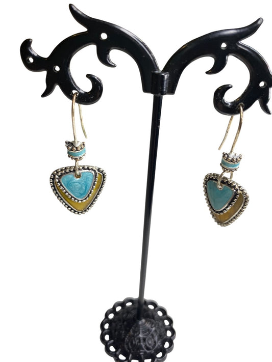 Silvertone Fishhook Earrings Triangular Shape Enameled 1.5" Drop