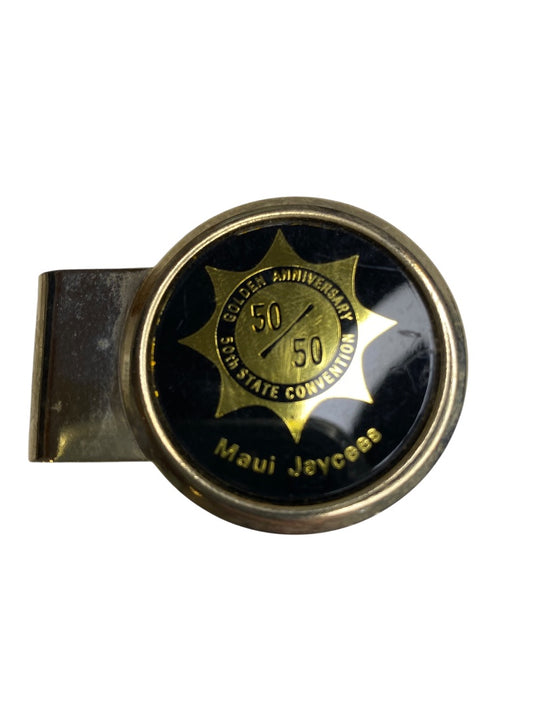 Vintage Maui Jaycees Money Clip Goldtone Black 50/50 Golden Anniversary