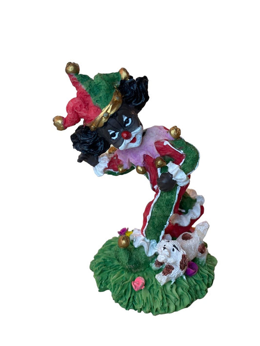 Resin Clown Figurine Green Red Brown Skin Jester Running Dog Grass 4.5"