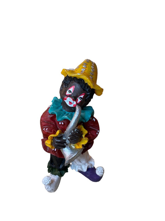 Resin Clown Figurine Brown Skin Playing Horn Musician 3.5"