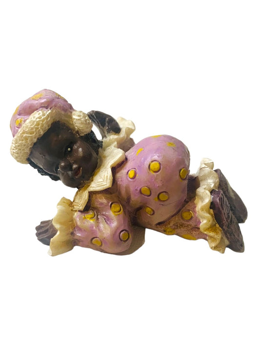 Resin Clown Figurine Brown Skin Baby Crawling Purple Polka Dot 2.2"