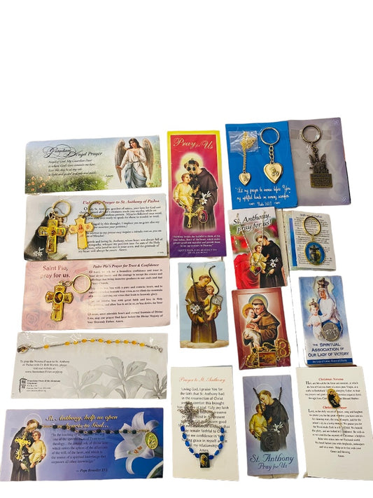 Lot of 16 Assorted Catholic Christian Prayers Cards Jewelry Saints Key Chain Cross Vintage