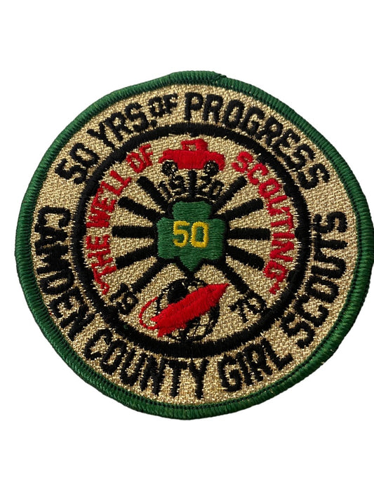 Girl Scout Patch Vintage 1970 Camden County 50 Years of Progress 3.7" Metallic