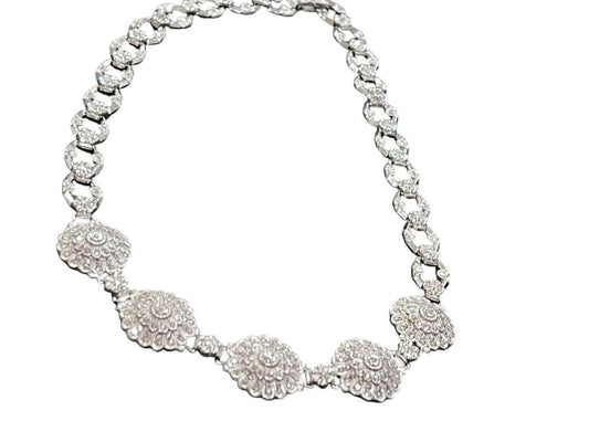 Sterling Silver Round Marcasite Statement Necklace Evening Formal 16”