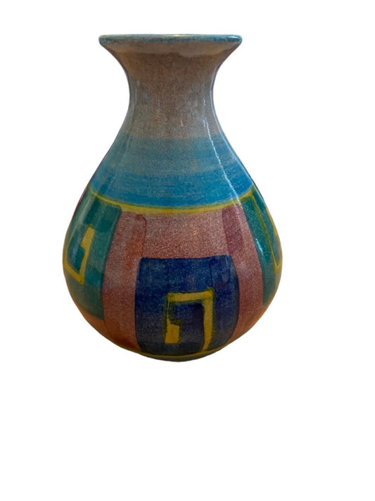 Ibarra La Paz Signed 4" Tall 3" Diameter Handpainted Pottery Bud Vase
