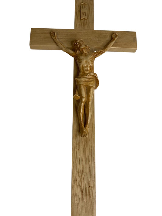 Vintage Plastic Cross Jesus INRI 12" Wall Hanging Wood Look
