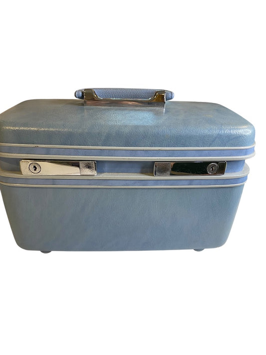 Vintage Samsonite Sky Blue Train Travel Case Mirror Travel Organizer