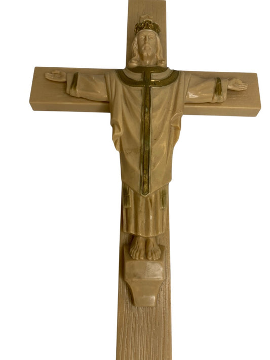 Vintage Plastic Cross Jesus INRI 12" Wall Hanging Gold Trim Paint