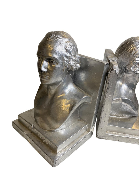 1960 Distressed Pair of Bookends Silver Bust of Washington Plaster Creepy