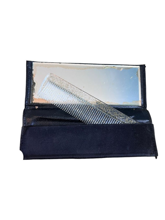 Vintage 2 Piece Hand Painted Satin Comb Mirror Case Holder