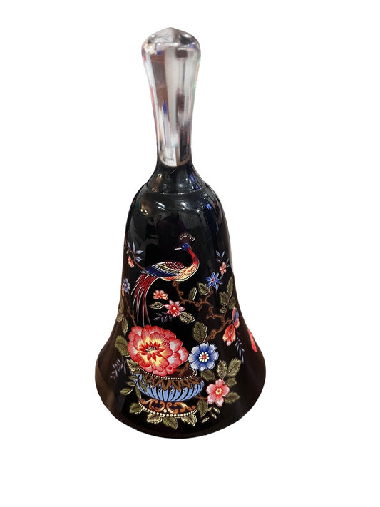 Black Glass Bell Italy Italian Peacock Flower Printed