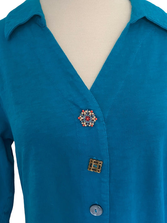 Medium Soft Surroundings Teal Boho Look Danielle Top Tunic Blouse