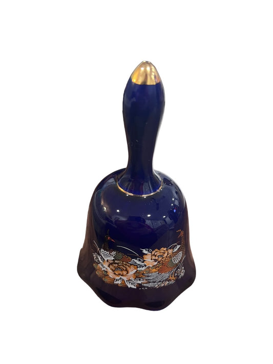 Blue Pheasant and Foliage Porcelain Bell Metallic Art