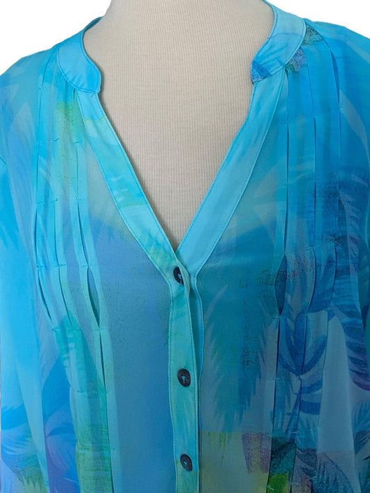 Medium Soft Surroundings Chiffon Blue Green Floral Tunic 2 Piece