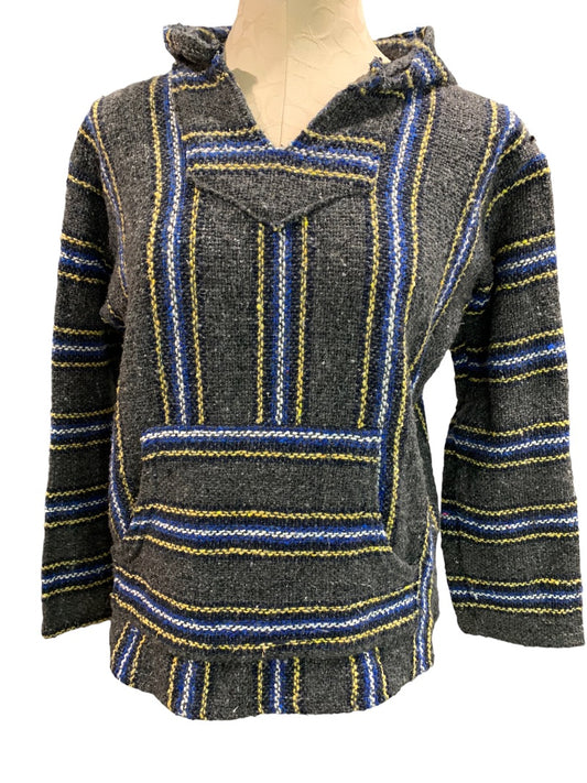 Small Unbranded Women's Baja Shirt Dark Gray Blue Yellow Pullover