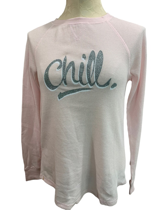 Small Xhilaration Pink Thermal Long Sleeve Top "Chill" Silver Glitter