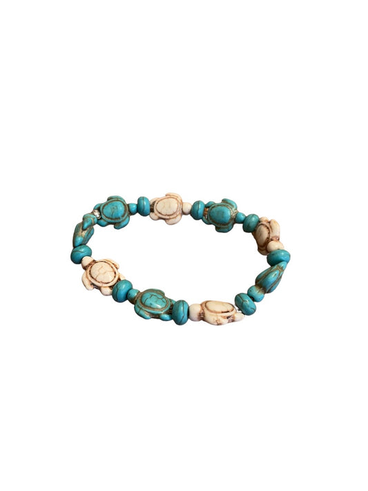 Sea Turtles Beaded Stretch Bracelet Faux Turquoise Off White