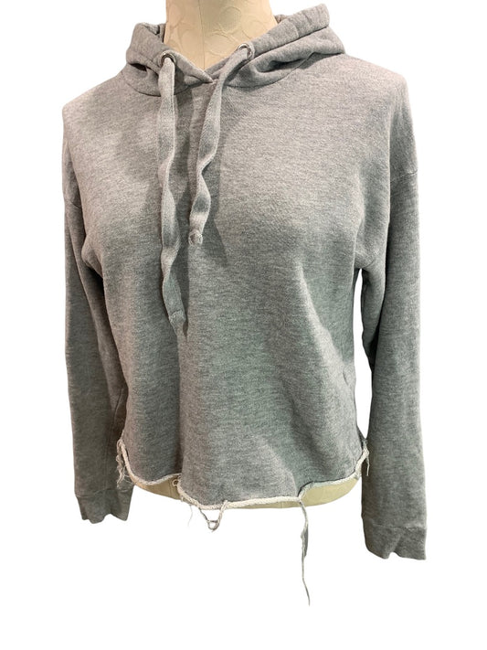 Small Forever 21 Junior Women's Gray Crop Pullover Hoodie Floral Embroidery