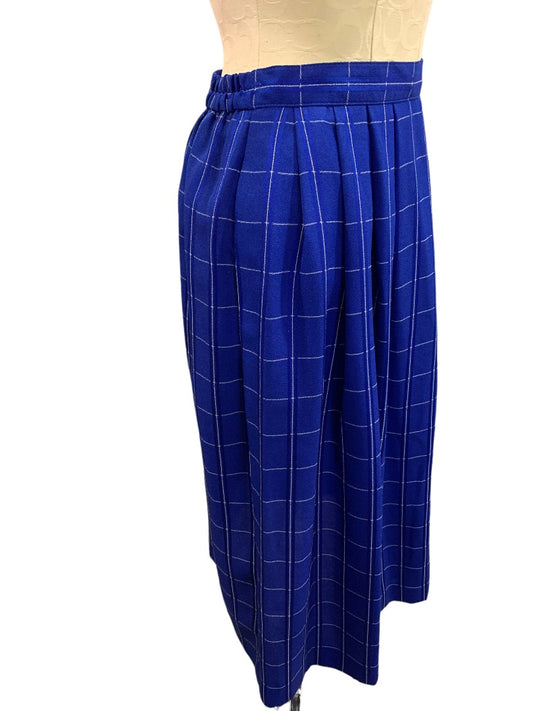 Size 10P Surburban Petites Women's Royal Blue Windowpane Check A-Line Skirt 1980s Vintage