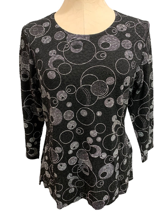 Large Notations Travel Knit Women's Black Pullover Top 3/4 Sleeve Circle Pattern Y2K