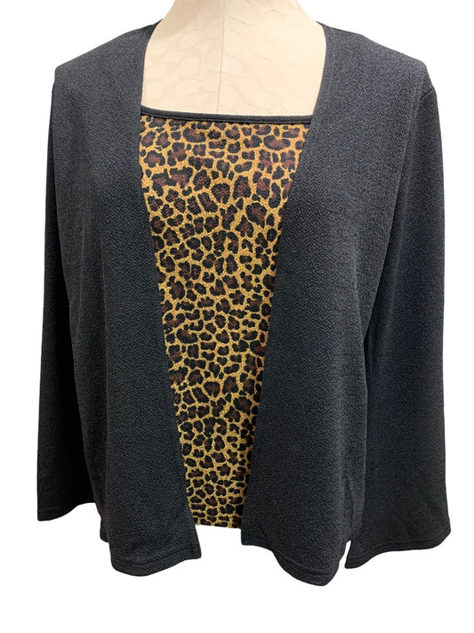Large JKLA Women's 1980s Vintage Layered Look Pullover Top Black Leopard Print
