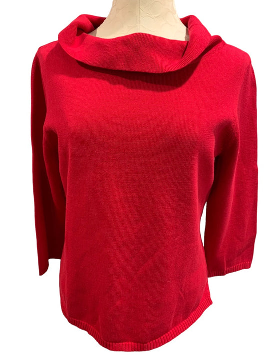 Large Rafaella Women's New Red Cowl Neck 3/4 Sleeve Sweater Cotton