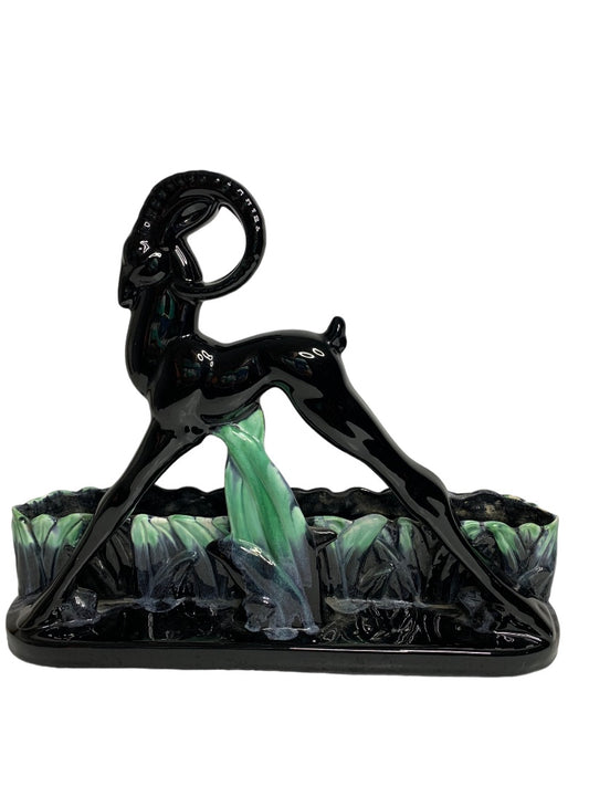 Midcentury Gazelle Pottery by Royal Haeger Planter Glossy Back Green