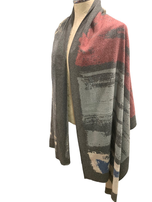 Soft Shawl Gray Blue Pink Watercolor Design Wrap 28" x 76"
