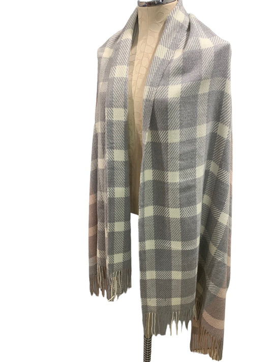 Love & Lore Women's Gray Cream Mauve Soft Shawl Wrap Fringed Checked Plaid 31" x 80"