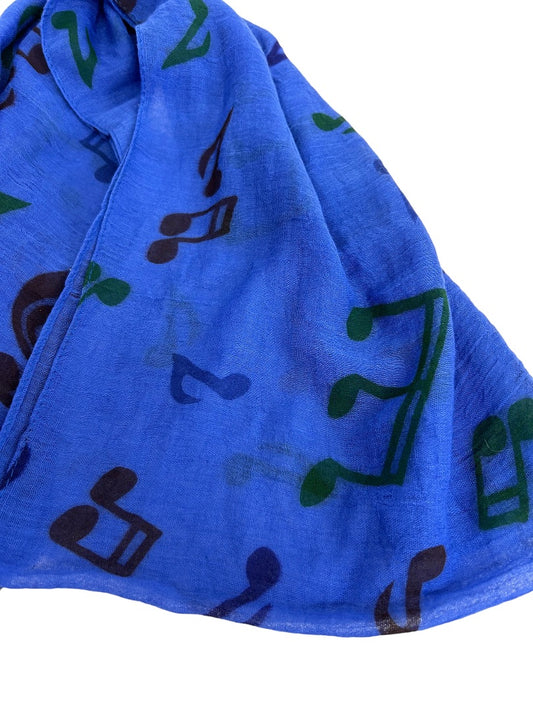Lightweight Gauzy Scarf Blue Music Notes Print 14" x 68"