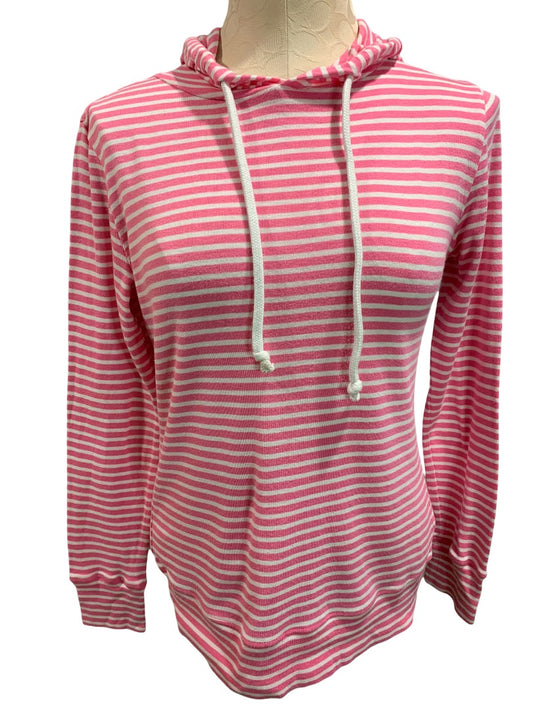 Small 1901 Women's Lightweight Pink White Striped Pullover Hoodie Soft Cotton Modal