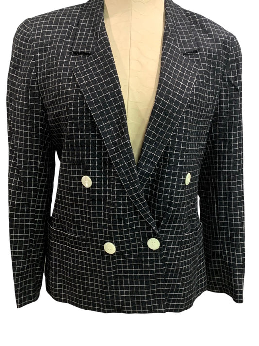 Size 10P Liz Claiborne Petites Black White Woven Check Blazer 1990s Vintage