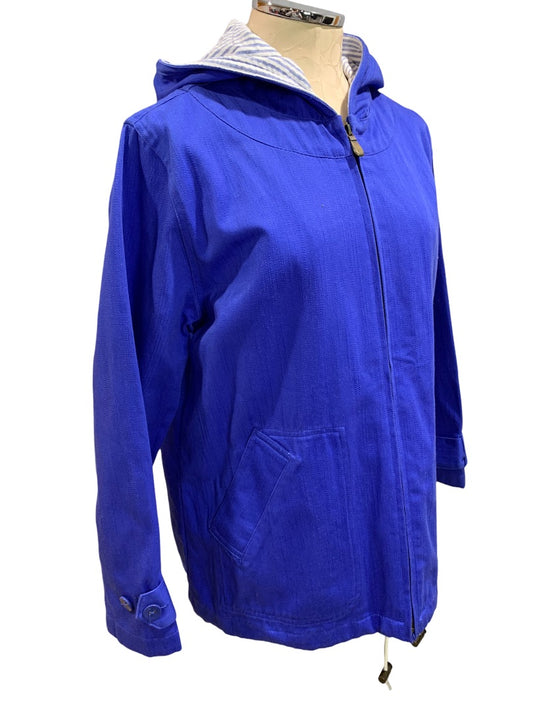 Medium Denim & Co Women's Blue Canvas Hooded Full Zip Jacket