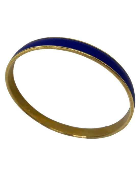J.Crew Signed Bangle Bracelet Blue Enameled and Goldtone 2.5 Inch Diameter