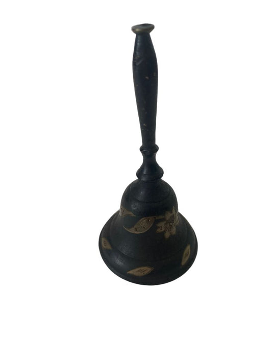 Vintage Brass Etched Flower Hand Bell 3.75" Tall