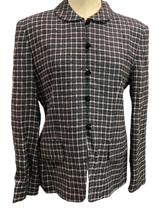 Size 10 Jones Wear Women's Black Pink Plaid Wool Blend Blazer 1990s Vintage