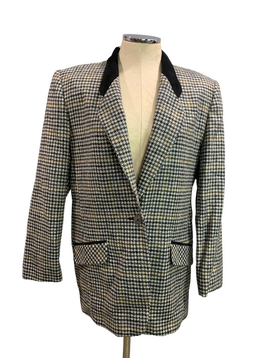 Size 8 Chemistry Brand Women's 1990s Vintage Houndstooth Blazer Suede Collar
