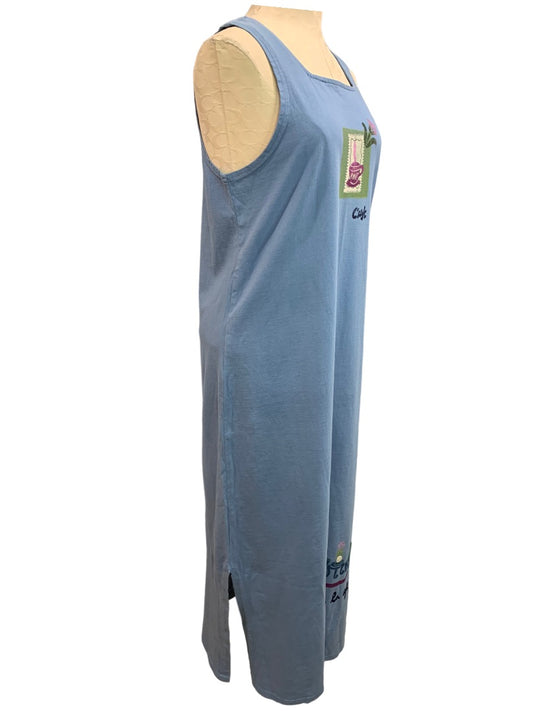 Medium Petite Studio Ease 1990s New Vintage Blue Knit Tank Dress Maxi