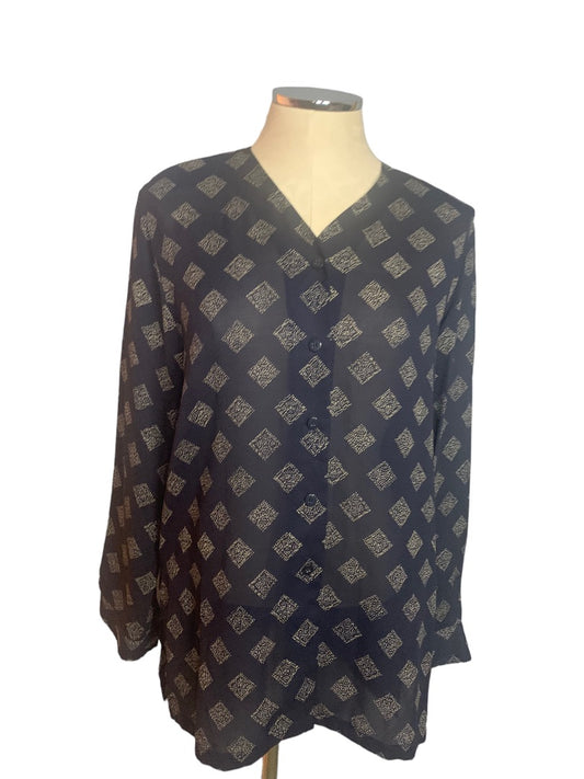 Size 6 Chaus Women's New Sheer Dark Navy Blue Button Up Blouse 1990s Vintage
