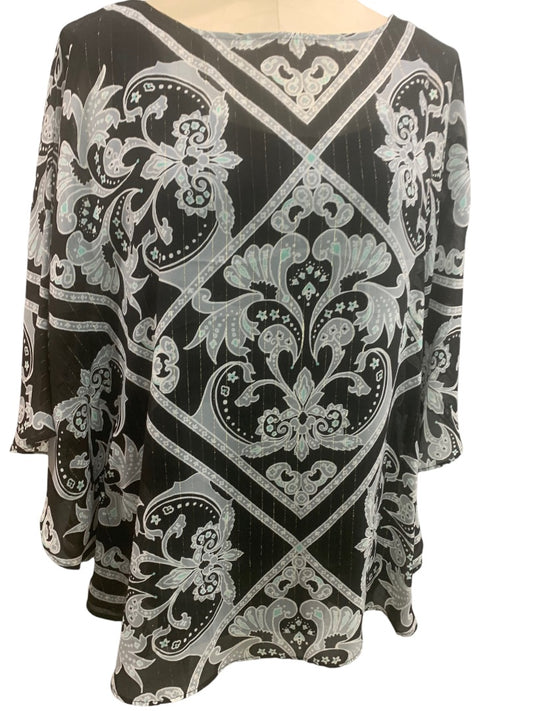 Large Ice Women's Silk Wrap Blouse Black White Print Lined