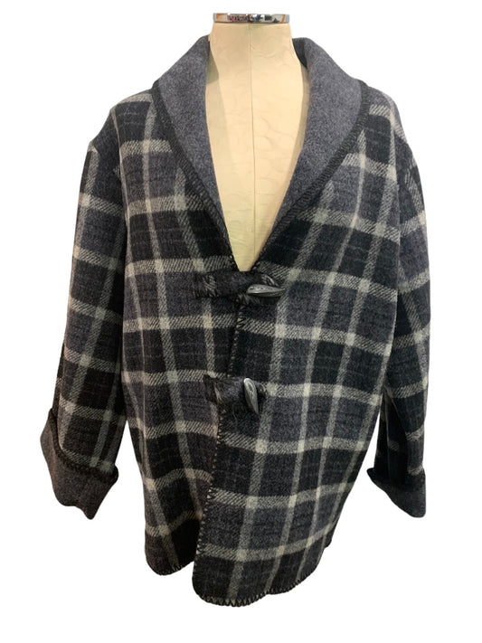 Large Petite Marsh Landing Petites Women's Gray Plaid Wool Blend Toggle Closure Coat Jacket