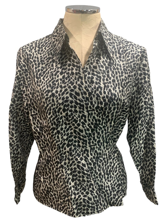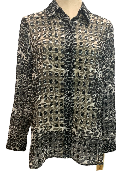 Medium Notations Women's New Sheer Animal Print Metallic Button Up Blouse