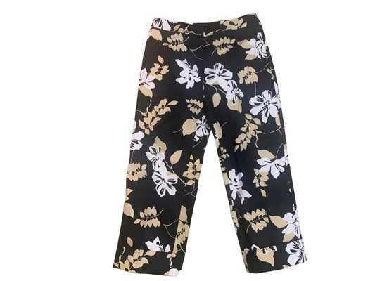 Size 8 Rafaella Women's Crop Pants Black Floral Leaf Print 23" Inseam Cuffed
